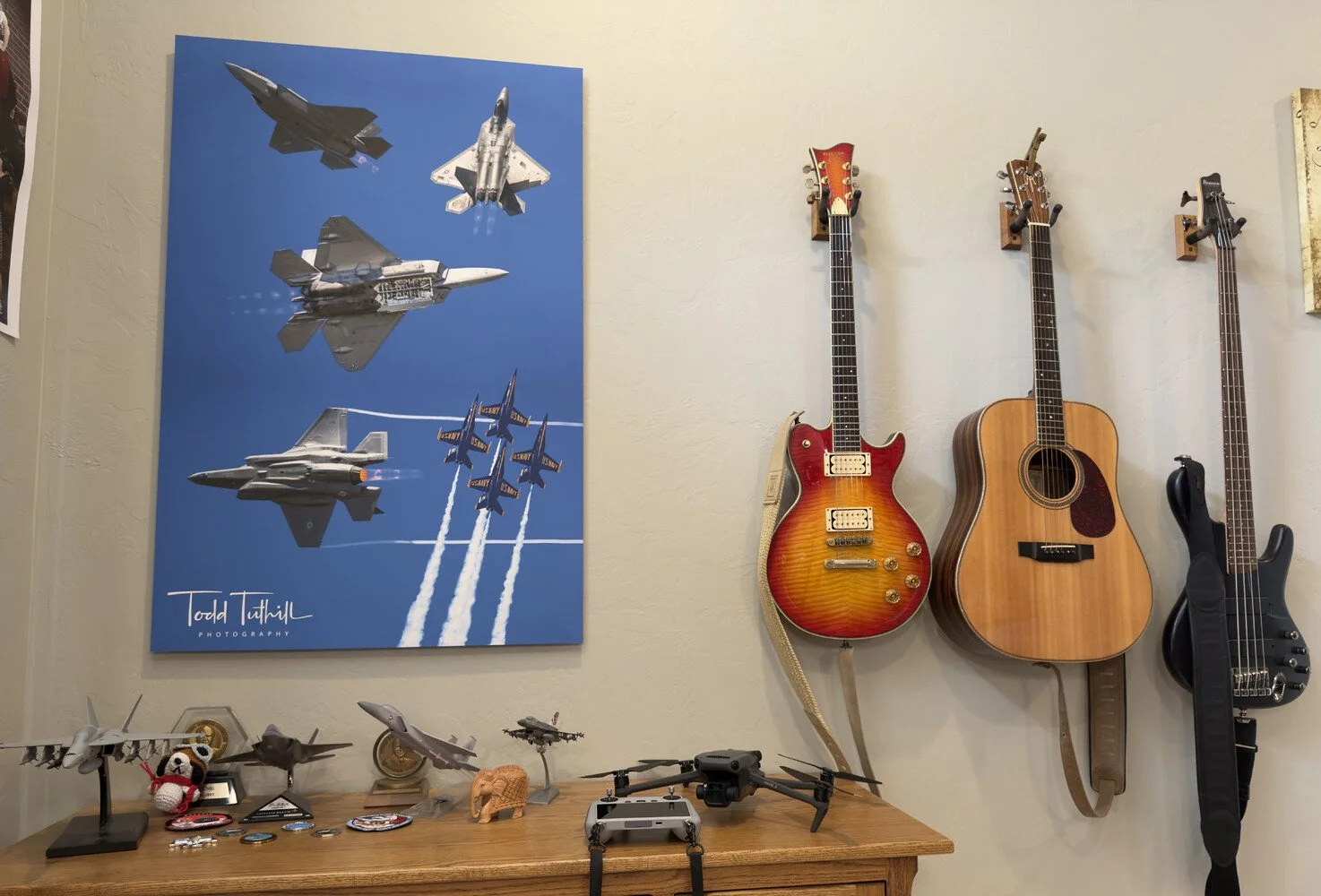 I am a photographer. The poster in the background is my work. Those images are from the Cleveland National Airshow in 2017 - thus the legacy Hornets in the Blue Angels image. It is still amazing to me that 5th gen fighter pilots open their weapons bays in public airshows. You can see more images here: https://oazd.smugmug.com/Cleveland-National-Airshow I also have a shot of an F-35 with its weapons bay open here: https://oazd.smugmug.com/Tucson-Thunder-and-Lighting-Airshow-2025